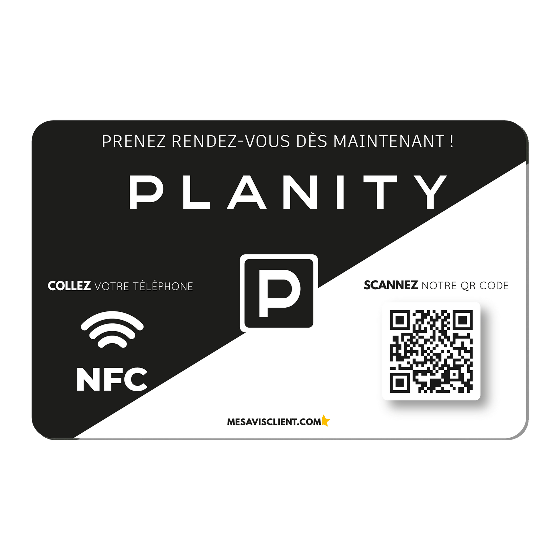 Carte NFC Planity avec QR Code - Prenez rendez-vous en un instant !