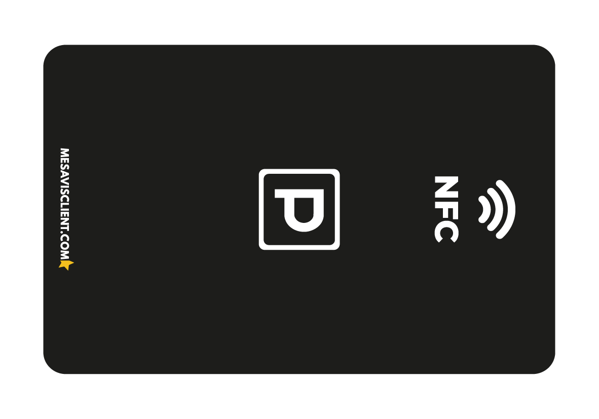 Il suffit d’approcher son téléphone contre la carte (comme un paiement sans contact) puis grâce à la technologie NFC, le client est directement redirigé vers la page de prise de rendez-vous de votre cabinet.